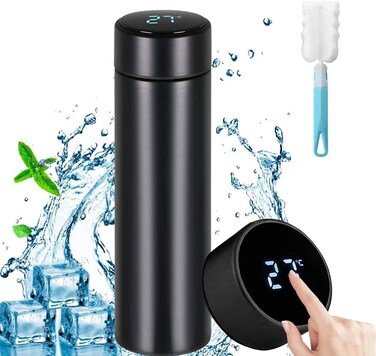 قوارير فراغية ذكية زجاجة حرارية للمياه من الفولاذ المقاوم للصدأ شاشة LED لدرجة الحرارة باللون الأسود (500 مل)