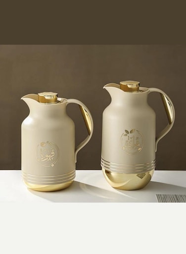 بيتروس طقم ترمس قهوة وشاي من بيتروس مكون من قطعتين بني فاتح/ذهبي 1لتر و 0.7لتر