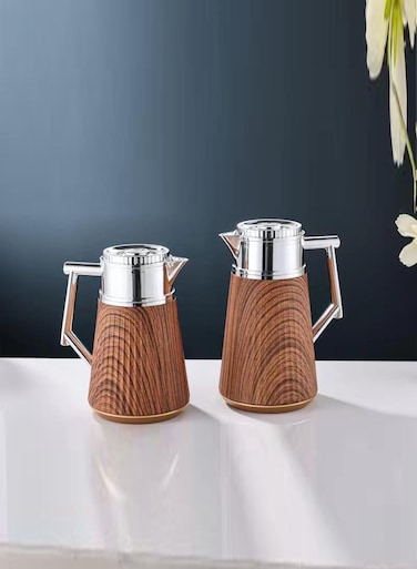 رويال كاميل طقم ترامس قهوة وشاي رويال كاميل من قطعتين خشبي/فضي 1 لتر و 0.5 لتر