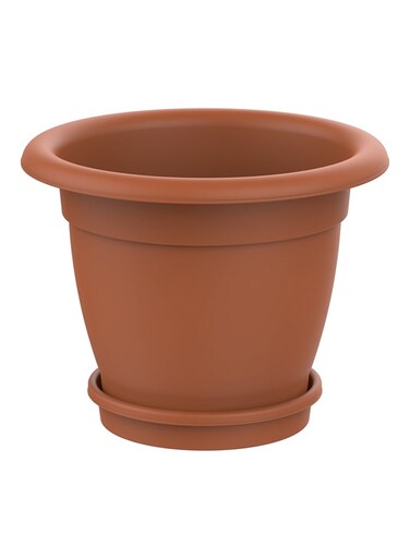 وعاء زهور دائري مع صينية مقاس 20 بوصة تيراكوتا