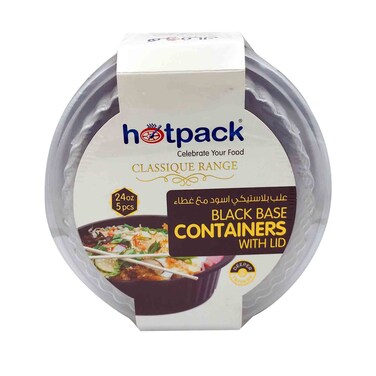 هوت باك علب بلاستيكية سوداء دائرية بغطاء 5 قطع 709مل