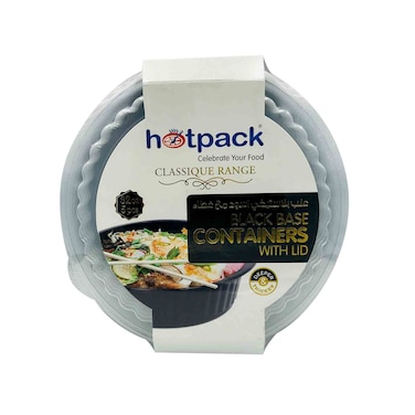 هوت باك علبة حافظة طعام قابلة للميكروويف مع غطاء قاعدة سوداء مستديرة 32 أونصة، 5 قطع