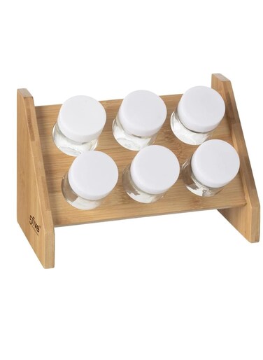 رف توابل مكون من 6 علب زجاجية