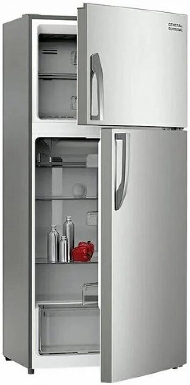 تتميز ثلاجة جنرال سوبريم العمودية ذات البابين بتقنية التبريد المضادة للتجمد مفتاح قفل الباب الأنيق والمقابض. إضاءة ليد وإعدادات خاصة بالرطوبة. مقياس حرارة تي وصندوق تبريد سريع 0 درجة. صندوق خضروات وأرفف زجاجية قابلة للتعديل. مفصلات باب شرفة قابلة للتعديل وغير مرئية. فتحات متعددة لتوزيع التبريد وباب قالب للقلب.
