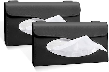 مجموعة من 2 حامل مناديل للسيارة ، حامل مناديل واقي من الشمس ، حامل علبة مناديل ، صندوق مناديل جلد بي يو ، حافظة مناديل للمقعد الخلفي للسيارة (اسود)