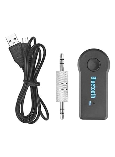 مستقبل Aux يعمل بالبلوتوث مع كابل USB للشحن أسود