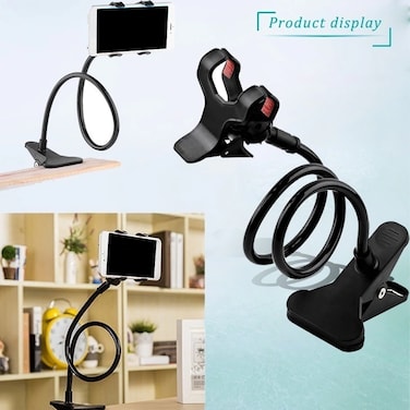 حامل جوال عالمي مرن بذراع طويل للسرير والمكتب والتابلت باللون الأسود