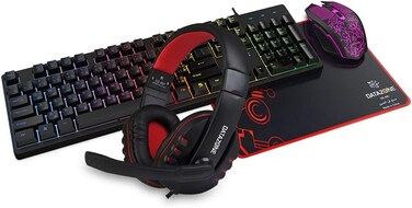تحتوي حزمة داتا زون 4 في 1 على كيبورد بإضاءة خلفية قوية مع مفاتيح وسائط متعددة. يحتوي الماوس على مستشعر بصري فائق الحساسية ودقيق مع حساسية قصوى تصل إلى 3600 نقطة لكل انش DPI. تضمن الوسادة انزلاقًا مثاليًا للماوس. وسادة فردية من الجلد البروتيني مريحة في الاستخدام، وسائد أذن من الجلد البروتيني ذات ملمس حيوي وإسفنجة لتقليل الضوضاء، يمكنها تقليل الضوضاء الخارجية بشكل فعال مع لمسة ناعمة ورقيقة. ميكروفون متعدد الاتجاهات، تخزين 360 درجة لمصادر الصوت، مما يضمن تجربة ألعاب ومكالمات صوتية عالية الجودة مواصفات الكيبورد: عدد المفاتيح: 104، تصميم الكيبورد: US+، التوافق مع أنظمة التشغيل باللغة العربية: ويندوز XP/فيستا/7/8/10/ماك، الواجهة: USB سلكي، الطول: 1.5 متر، الأبعاد (العرض * الارتفاع * الطول): 438 * 135 * 32 ملم، إضاءة LED خلفية: عدد مفاتيح الوسائط المتعددة بألوان قوس قزح: 12 (FN+F1~F12) مواصفات الماوس التقنية: عدد المفاتيح: 6 أزرار، الدقة: 1200-1800-2400-3600، إضاءة LED خلفية: 7 ألوان ضوئية دائرية، التسارع: سرعة جاذبية 12، معدل الإطلاق: 125 هرتز، طول الكببل: 1.5 متر، الأبعاد: 129*67*39 ملم، المنتَج متوافق مع أنظمة التشغيل الآتية: ويندوز اكس بي/فيستا/7/8/10/ماك، مواصفات سماعة الرأس: أبعاد الميكروفون: القُطر 6.0 * 5.0 ملم، الاتجاهات: أحادي الاتجاه، قُطر مكبر الصوت: 40 ملم، المقاومة: 32 اوم، استجابة التردد: 20 ~ 20000 هرتز، الحساسية (S.P.L): 52 ديسيبل ±3 ديسيبل، طول السلك: ≤1.2 متر، مواصفات وسادة الماوس: المواد: سطح من نسيج سباندكس ناعم + قاعدة مطاطية + حواف مخيطة، الأبعاد: 320 × 240 × 3 متر