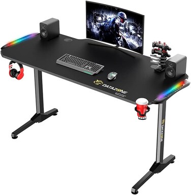 Datazone طاولة العاب احترافية 140 سم طراز GT351RGB، بالفضاء اللوني RGB بسطح مضاد للماء مصنوع من الياف كربونية، مزود بخطاف لسماعة الراس وصندوق للتحكم في الطاقة وحامل اداة للتحكم بالالعاب وقاعدة ماوس
