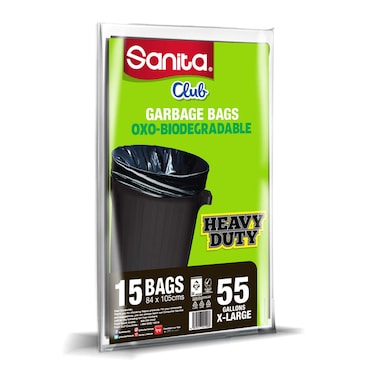سانيتا كلوب أكياس النفاية القابلة للتحلل، 55 غالون، 15 كيس