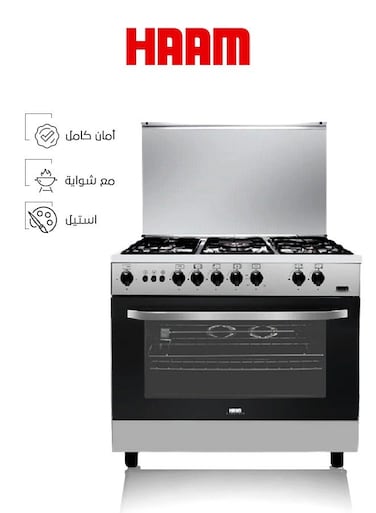 فرن غاز - 5 عيون - 80*55 - أمان كامل - استيل - HM80GF-20