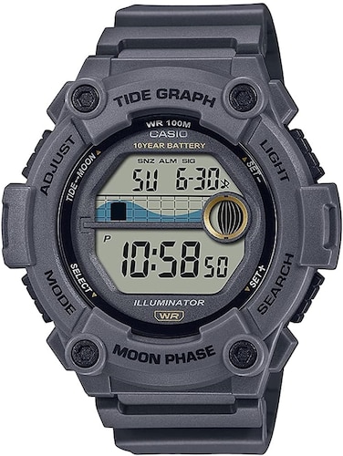 كاسيو ساعة رقمية بمينا شفافة وسوار راتنج للرجال، WS-1300H-8AVDF، رمادي