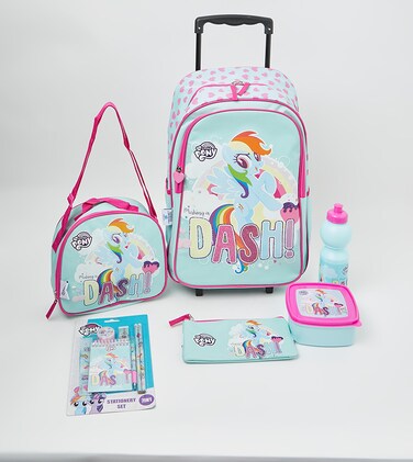 مجموعة حقيبة العودة إلى المدرسة ماي ليتيل بوني 12 قطعة (حقيبة مدرسية بعجلات 18 بوصة، حقيبة غداء، مقلمة، مجموعة القرطاسية، زجاجة ماء، صندوق غداء)