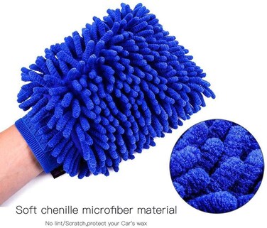 قفازات إزالة الأتربة لتنظيف المنزل وغسيل السيارة من قطعتين مصنوعة من المايكروفايبر لأغراض الغسيل والتنظيف والتلميع السريع، لون ازرق