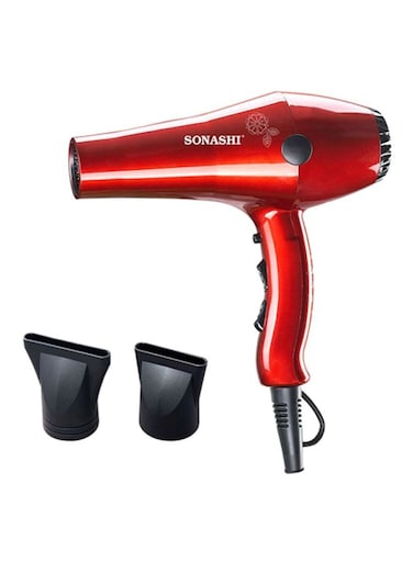 مواصفات المنتج: يأتي مجفف الشعر هذا من سوناشي بلون أحمر لامع وبقدرة 2000 وات. وهو مزود بمحرك يعمل بتيار متردد بجهد 220-240 فولت.