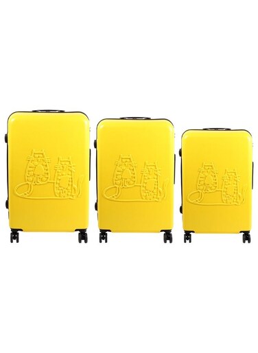 بيج ديزاين طقم حقائب سفر بتصميم قطط مكون من 3 قطع أصفر