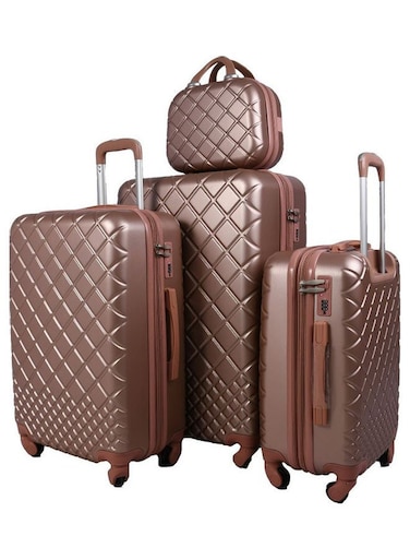طقم حقائب سفر بعجلات مكون من 4 قطع بني