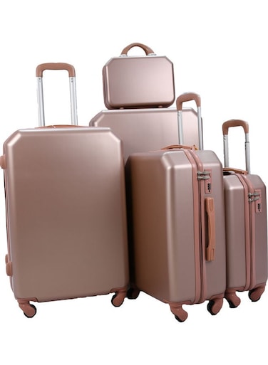 طقم حقائب سفر بعجلات مكون من 5 قطع ذهبي وردي