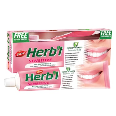 دابر معجون هيربل للأسنان الحساسة 150جرام مع فرشاة أسنان مجانية