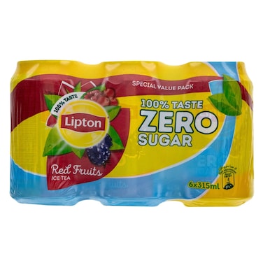 ليبتون شاي مثلج بدون سكر بنكهة الفواكه الحمراء 315 مل ×6