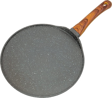 مقلاة مسطحة من الالومنيوم المطلي بالجرانيت من رويالفورد، شواية من 5 طبقات ومقبض بكلايت مع لمسة من خشب متين، متوافقة مع موقد الغاز والهالوجين والطبق الساخن والسيراميك، متعددة الالوان، طراز RF10766