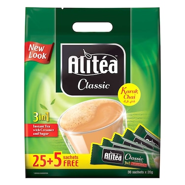 أليتيا كلاسيك 3 في 1 كريمة وسكر شاي كرك شاي فوري 20 غرام × حزمه من 25 + 5 مجانًا