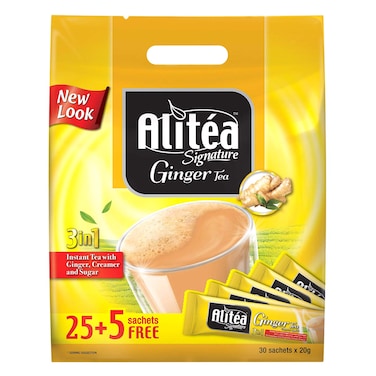• استمتع اليوم بالراحة والنكهة المميزة لشاي أليتيا سيجنتشر 3 في 1 سريع التحضير بالكريمة والسكر والزنجبيل.