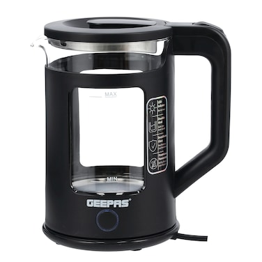 Geepas غلاية زجاجية بطبقة مزدوجة، سعة 1.7 لتر، GK38049، حماية من الغليان والجفاف التلقائي، لاسلكي بضوء ال إي ليد ازرق، قاعدة لاسلكية 360 درجة