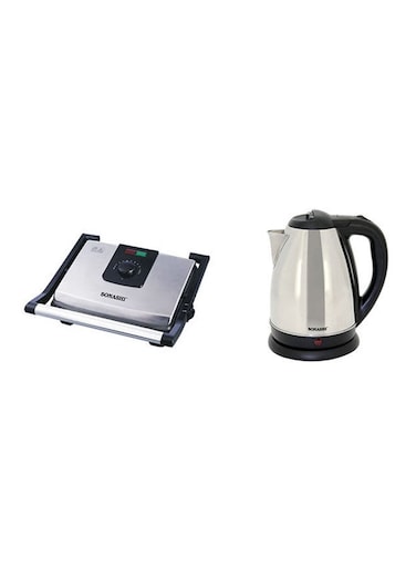سوناشي غلاية كهربائية لاسلكية 1500 واط مع 4 شرائح شواء صانع ساندويتش، 1.8 لتر، 2000 واط، SGT-854 / SKT-1804، حزمة، أسود / فضي