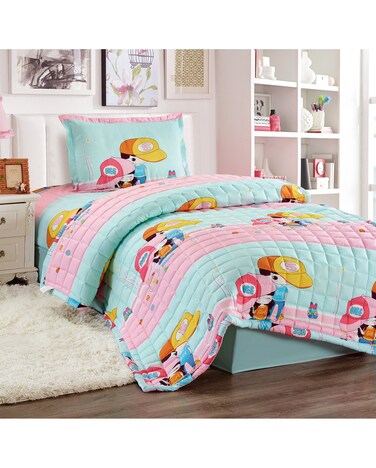 سليب نايت طقم لحاف أطفال مضغوط من 3 قطع مقاس مفرد 150 × 200 سم، طقم مفرش سرير مطبوع، حديث للبنات والأولاد، متعدد الألوان