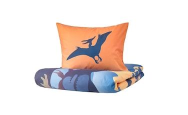 Duvet cover and pillowcase, Dinosaurs at sunrise orange/blue150x200/50x80 cm