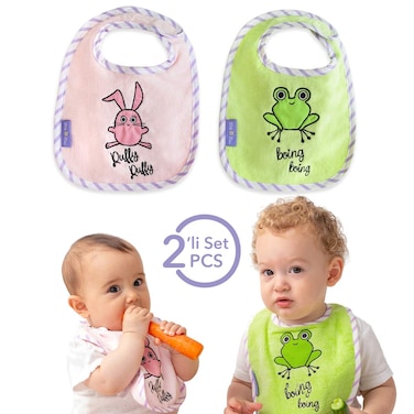 مجموعة مكونة من صدريتين للمناشف: مطرزة باللون الوردي Chanchin، ومطرزة على شكل ضفدع Sprat