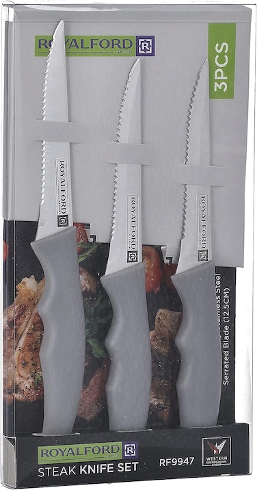رويال فورد مجموعة سكاكين بشفرات ستانلس ستيل حادة للطبخ ومثالية لتقطيع اللحوم الفاكهة والنحت من رويال فورد، هدية مثالية للمطبخ ومحبي الطبخ والطهاة، من 3 قطع، متعددة - Rf9947