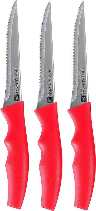 مجموعة سكاكين بشفرات ستانلس ستيل حادة للطبخ ومثالية لتقطيع اللحوم والفاكهة والتقشير من رويال فورد، هدية مثالية للمطبخ ومُحبي الطبخ والطهاة - 3 قطع/RF9947RD
