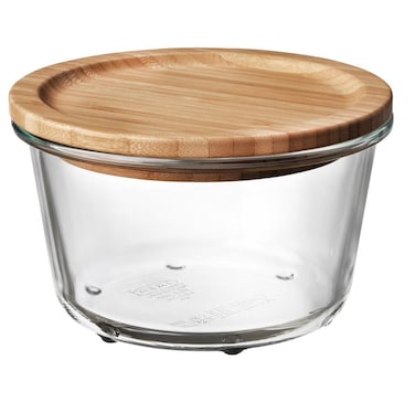حافظة طعام بغطاء, زجاج دائري/خيزران600 مل