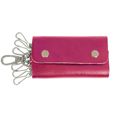 محفظة لسلسلة مفاتيح السيارة من الجلد وردي