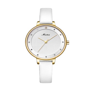 ساعة يد انالوج جلد مقاوم للمياه للنساء من ميبين, M1080-RS