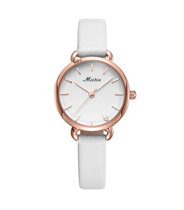العلامة التجارية: ميبين, لون المينا: ابيض, لون الهيكل: روز جولد, لون السوار: ابيض, نوع العرض: انالوج, شكل الساعة: دائري, مادة السوار: جلد, رقم الموديل: M1111-WRG