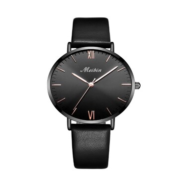 ساعة يد انالوج جلد مقاوم للمياه للنساء من ميبين, M1132-GYS
