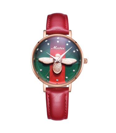 العلامة التجارية: ميبين, لون المينا: متعدد الألوان, لون الهيكل: روز جولد, لون السوار: احمر, نوع العرض: انالوج, شكل الساعة: دائري, مادة السوار: جلد, رقم الموديل: M1138-RRG