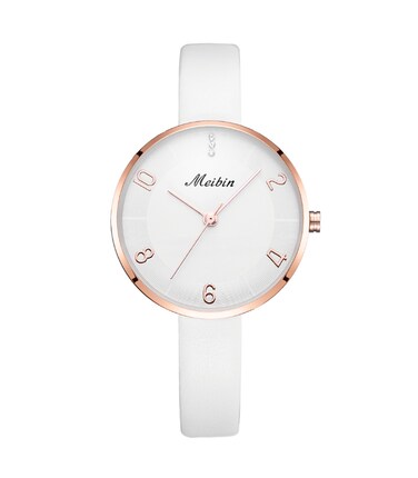 العلامة التجارية: ميبين, لون المينا: ابيض, لون الهيكل: روز جولد, لون السوار: ابيض, نوع العرض: انالوج, شكل الساعة: دائري, مادة السوار: جلد, رقم الموديل: M1188-WRG