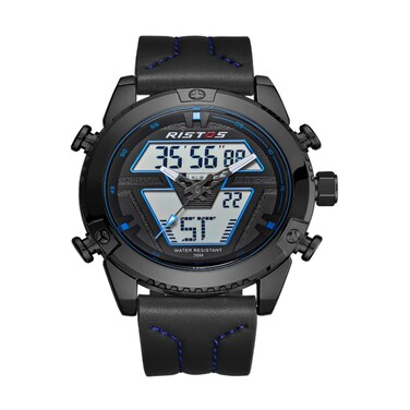 ساعة يد رياضية انالوج - ديجيتال جلد مقاوم للمياه للرجال من ريستوس, 9368-BL