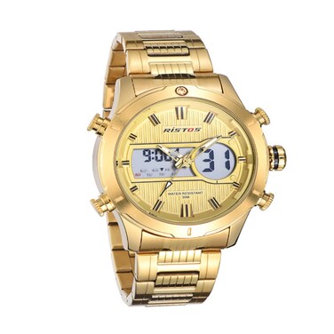 ساعة يد رياضية انالوج - ديجيتال ستانلس ستيل مقاوم للمياه للرجال من ريستوس, 9360-BS