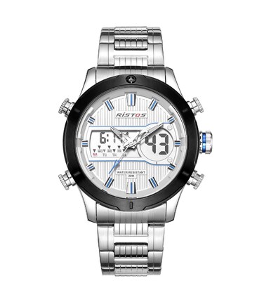 ساعة يد رياضية انالوج - ديجيتال ستانلس ستيل مقاوم للمياه للرجال من ريستوس, 9360-WS