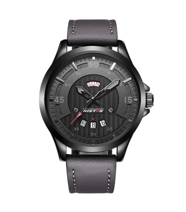 العلامة التجارية: ريستوس, لون المينا: اسود, لون الهيكل: اسود, لون السوار: رمادي, نوع العرض: انالوج, شكل الساعة: دائري, مادة السوار: جلد, رقم الموديل: 9321-GY