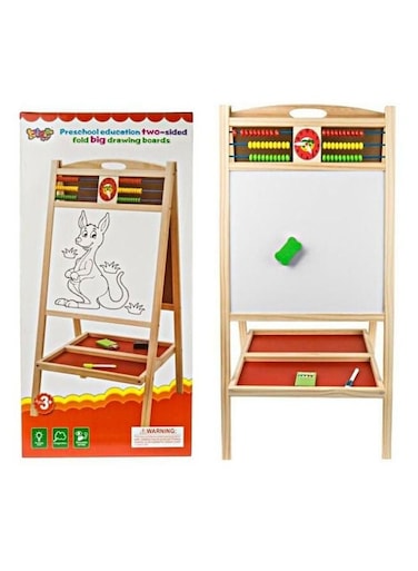 يوجد فوق السبورة عداد به خرز ملون ، حتى يتمكن الطفل من تعلم العد