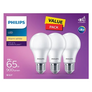 فيليبس 3 لمبات إل إي دي قوة 9 واط، قاعدة إي27، الجيل الخامس