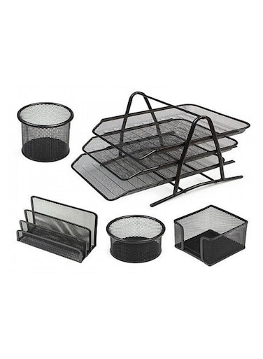 طقم تنظيم أغراض المكتب من القماش الشبكي والمعدن يتألف من 5 قطع أسود