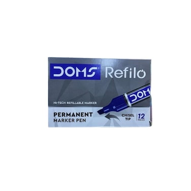 دومس قلم ماركر دائم برأس إزميل، لون أزرق، عبوة من 12 قطعة