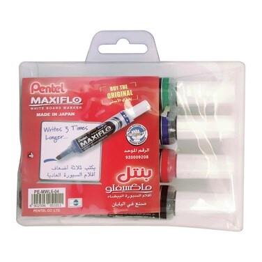 بانتل ماكسيفلو أقلام السبورة البيضاء 4 قطع - متعددة الألوان